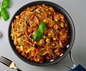 4. Add the chopped zucchini and Italian seasoning and continue to cook for another 3 minutes, until the zucchini is tender.
