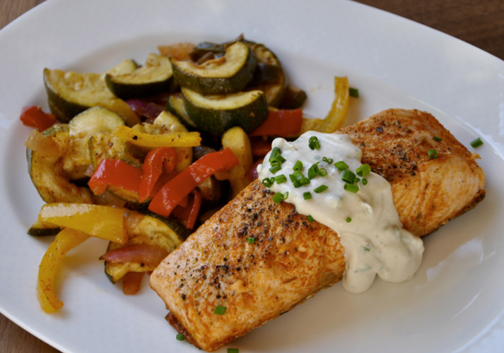 The best dinners to fuel your fitness results are a combination of fresh, fiber-rich vegetables and quality protein, like this Salmon and Veggie dish. Enjoy!